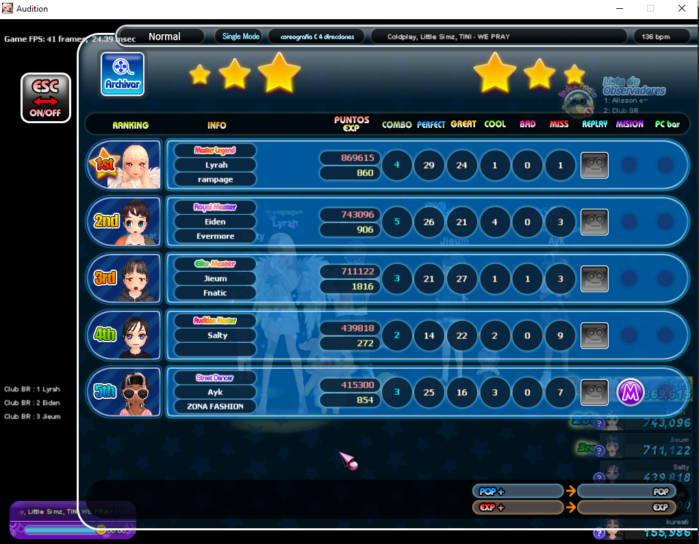 2ª SALA: MISSÃO: MAIOR NÚMERO DE PERFECT / DESEMPATE: MAIOR SCORE